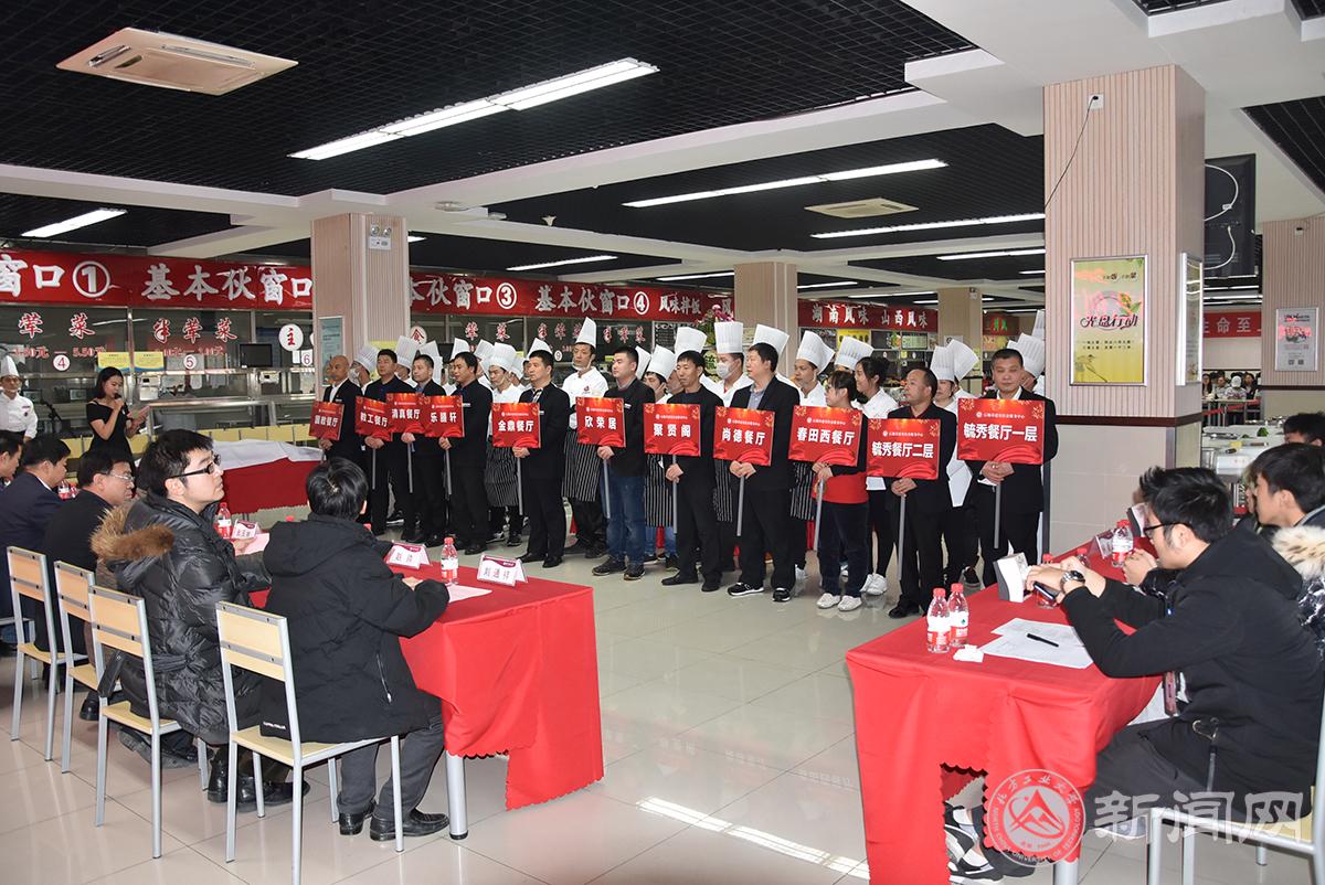副校長胡應(yīng)平、校工會常務(wù)副主席張玉林、服務(wù)中心總經(jīng)理胡春江、服務(wù)中心黨委書記張加強(qiáng)、后勤基建處處長趙永兵、學(xué)工部副部長趙帥、校團(tuán)委副書記陳國秀、后勤基建處負(fù)責(zé)人以及100余名學(xué)生代表應(yīng)邀出席比賽。本次大賽共有11個(gè)代表隊(duì)37名選手參賽,基本伙食堂、風(fēng)味食堂、餐廳共11個(gè)廚藝展臺參展,參展菜品近百余種。為了保證比賽公開、公正、公平的進(jìn)行,本次大賽特別邀請我校伙委會5名學(xué)生代表擔(dān)任比賽評委。