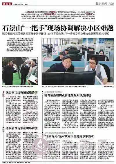 劉澤軍認為,12345市民熱線接訴即辦工作可以看作是北京市推進國際化大都市精細化治理過程中的一個樣本。“這是來自中國基層治理、可以概括總結的中國經驗。在這個樣本中,清晰地感受到政府的基本定位,政府在做什么、為誰做、怎么做。”“今天書記帶隊接聽市民熱線,實際是在現場答卷,也是對石景山區政府治理狀況的全面檢驗。”他認為,石景山區在長期致力于關注民生的政府治理體系中,形成了一個比較完備的運行機制,即訴求辦理、統籌協調、工作調度、激勵獎懲、督辦督查相互銜接的工作機制。