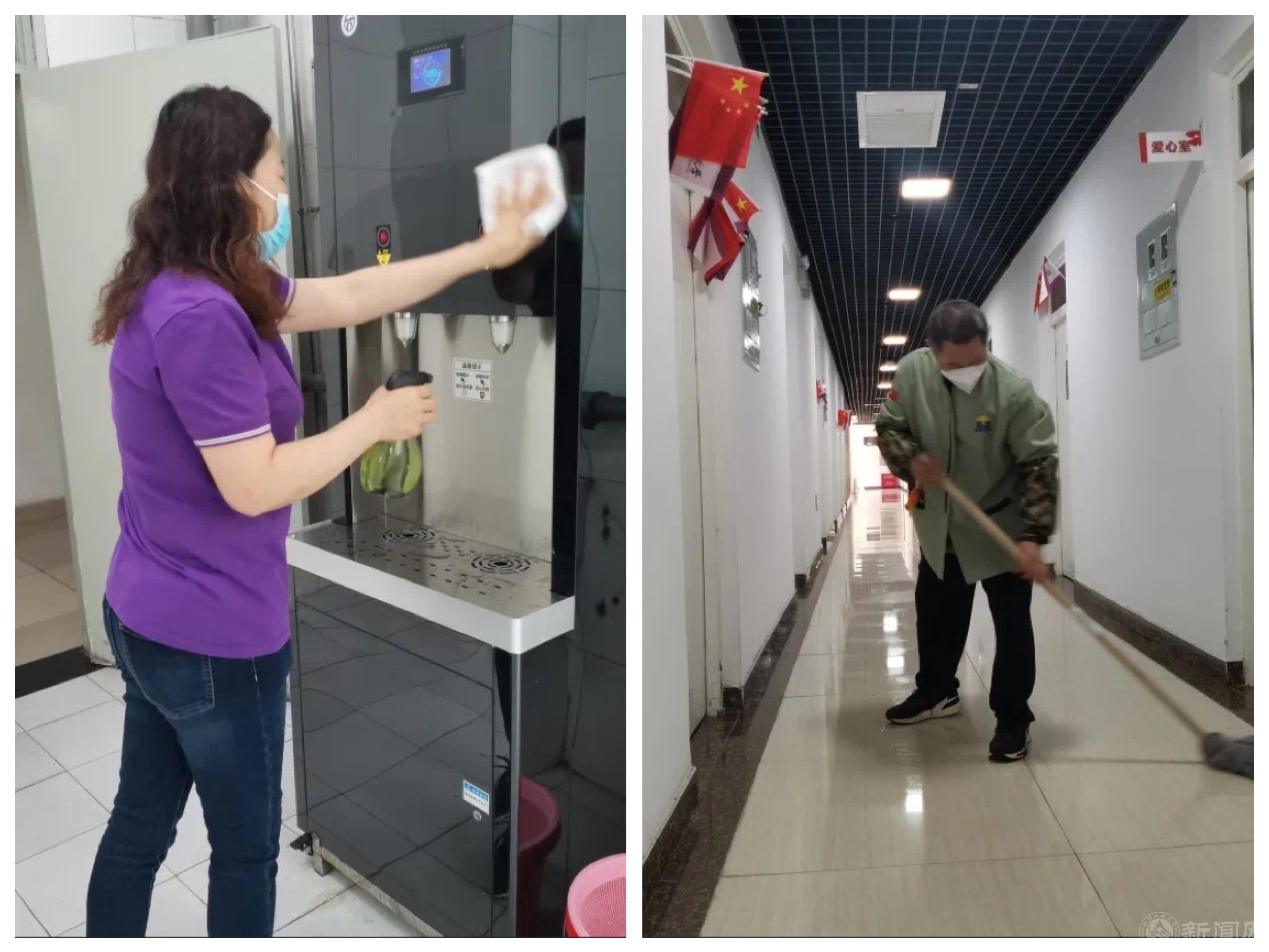 綠化環(huán)衛(wèi)員工第一時間進(jìn)入“戰(zhàn)疫”狀態(tài),教學(xué)區(qū)內(nèi)部分工作人員一人多崗,在做好樓宇值班工作的同時,還擔(dān)負(fù)起衛(wèi)生清掃和綠化養(yǎng)護(hù)等任務(wù)。室內(nèi)外保潔人員全力做好教學(xué)區(qū)域的日常清潔、消殺以及垃圾清運(yùn)工作,確保封閉后的校園環(huán)境依然潔凈、美麗、安全。
